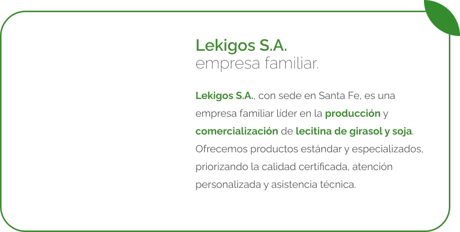 Lekigos S.A., con sede en Santa Fe, es una empresa familiar lider en la producción y comercialización de lecitina de girasol y soja.